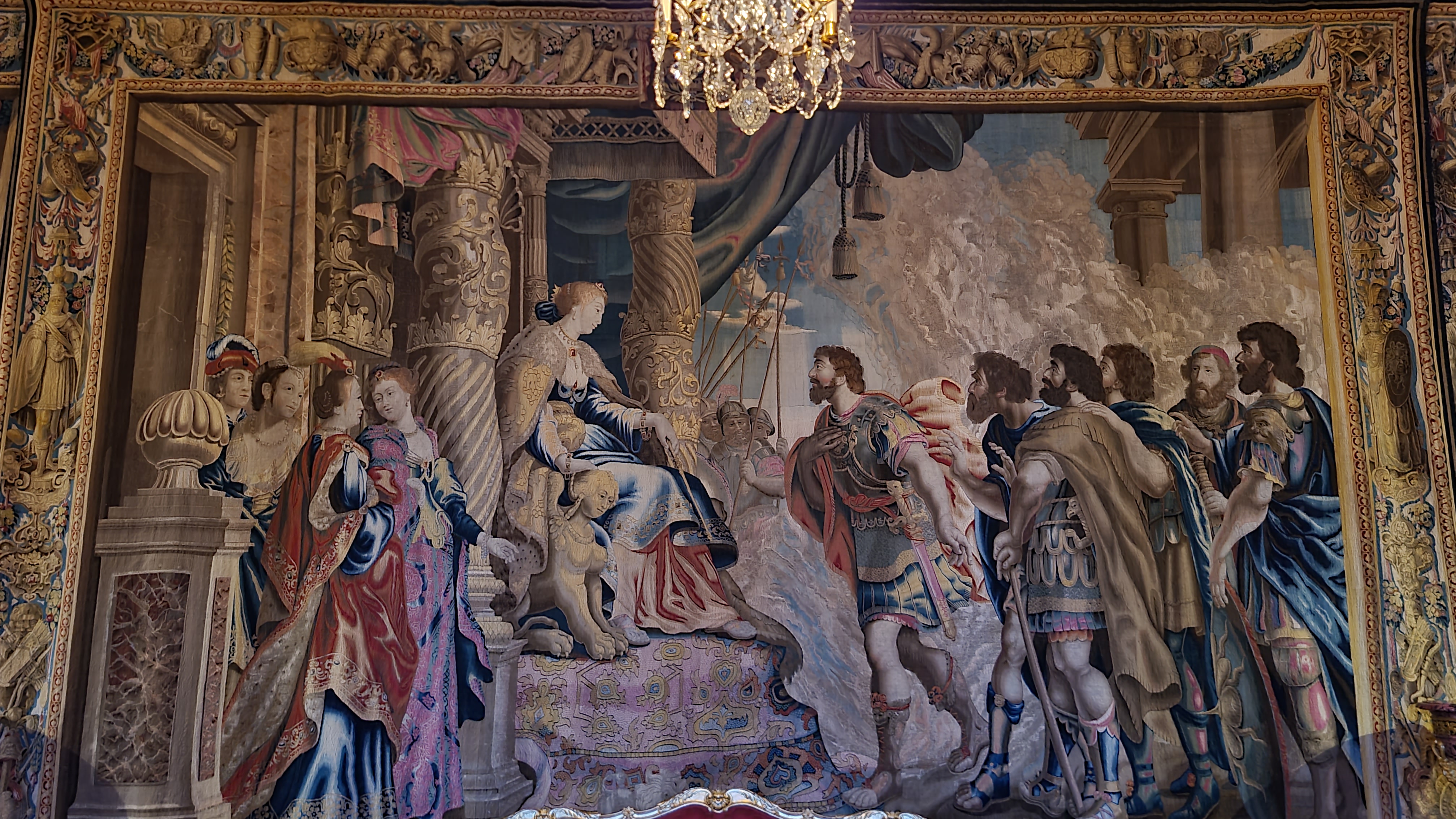 타페스트리로 장식된 벽면. 영국 하드윅 홀이 타페스트리로 유명한데, 하드윅 홀의 여인 Arbella Stuart에 관해 애와 한참 이야기했다. 내 기억과 달리 Arbella Stuart이 꼭 비운의 여인이라고 평할 수는 없고 애가 이야기한다.