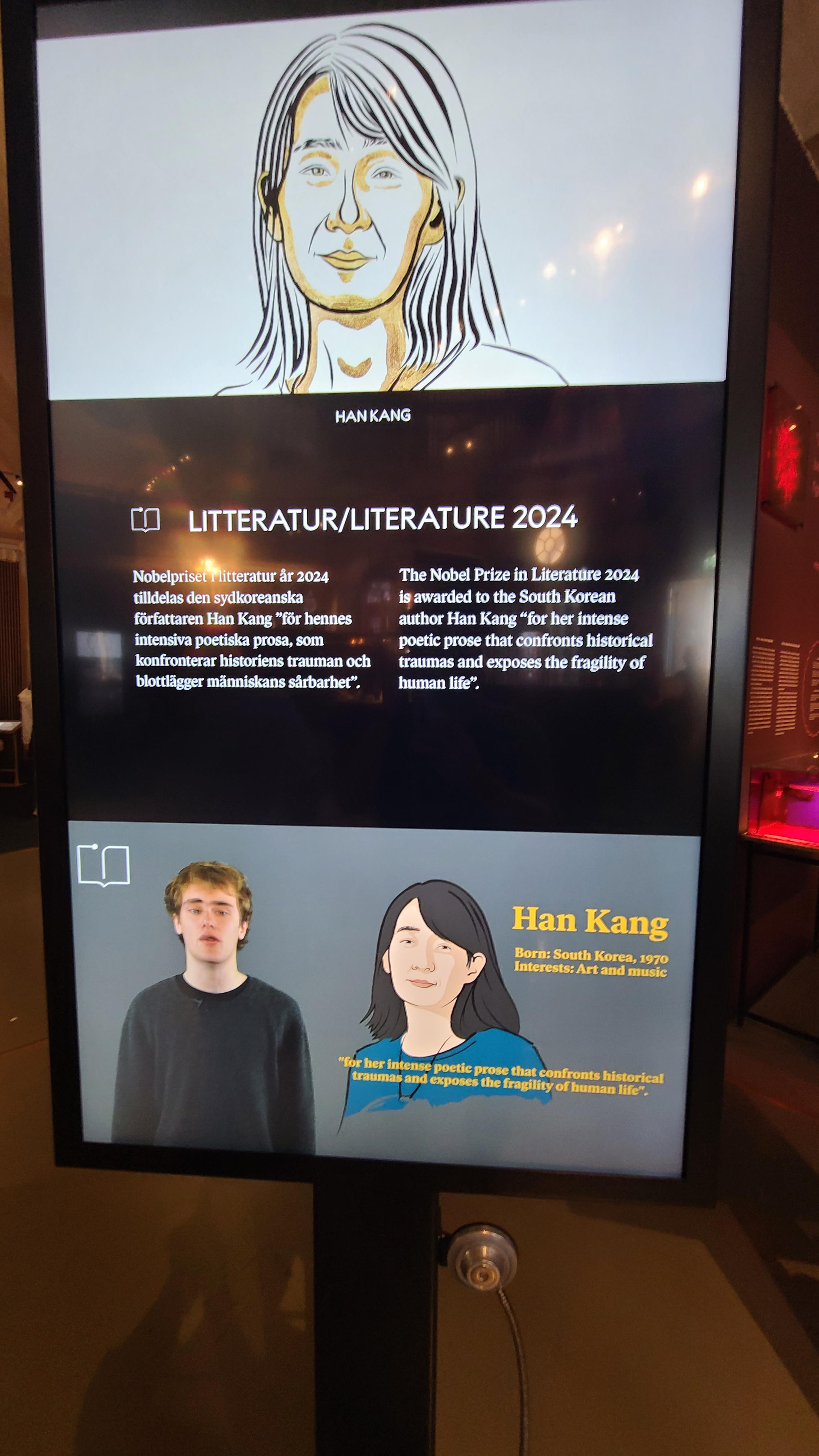 그래도 노벨상 박물관 들어가자마자 작가 한강이 떡하니 우리를 맞아준다.