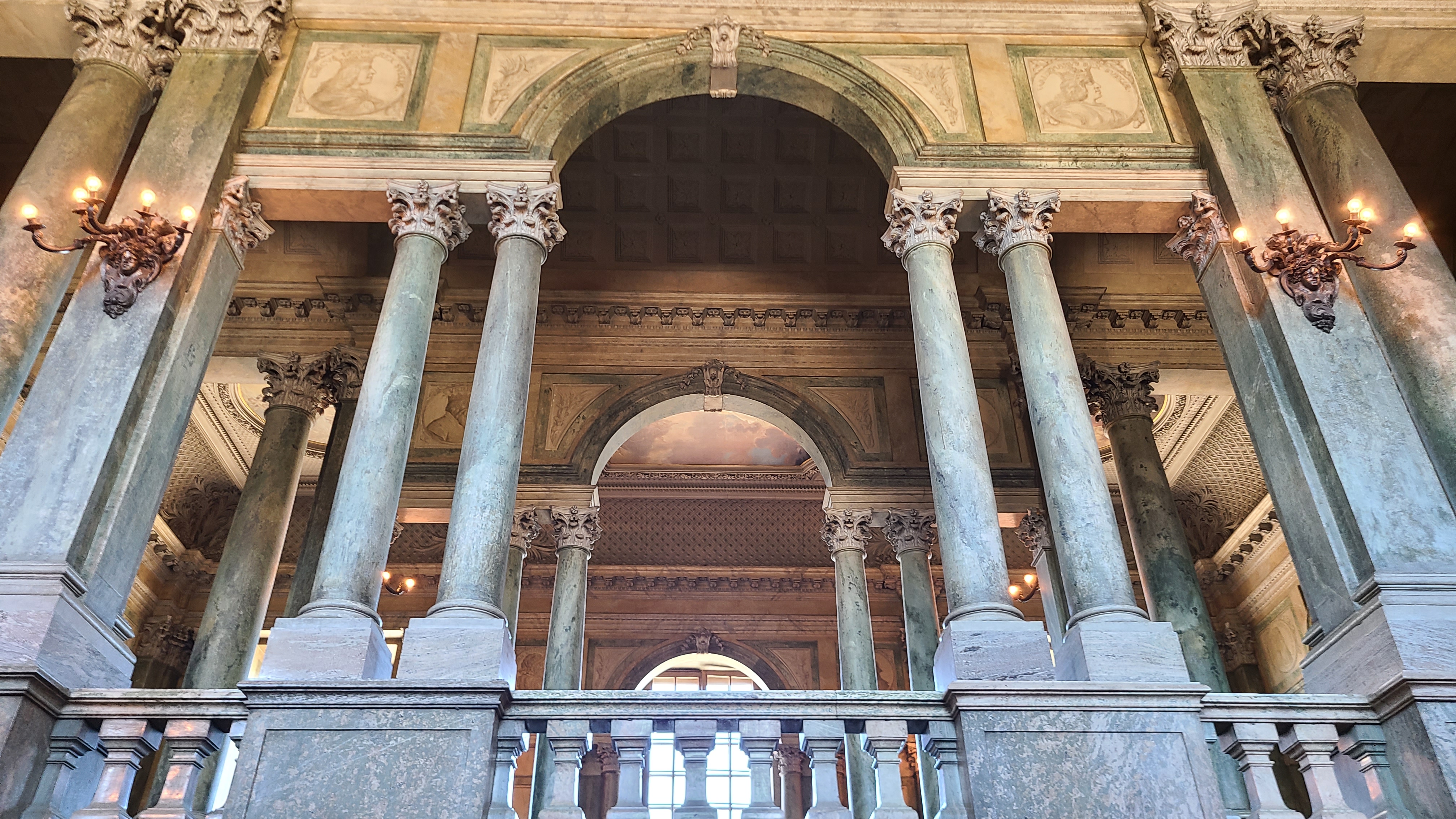 표를 검사하고 왕궁으로 들어가는 계단실. 돔 형태의 계단실이 스웨덴 왕실의 화려함과 웅장함을 미리부터 보여준다.