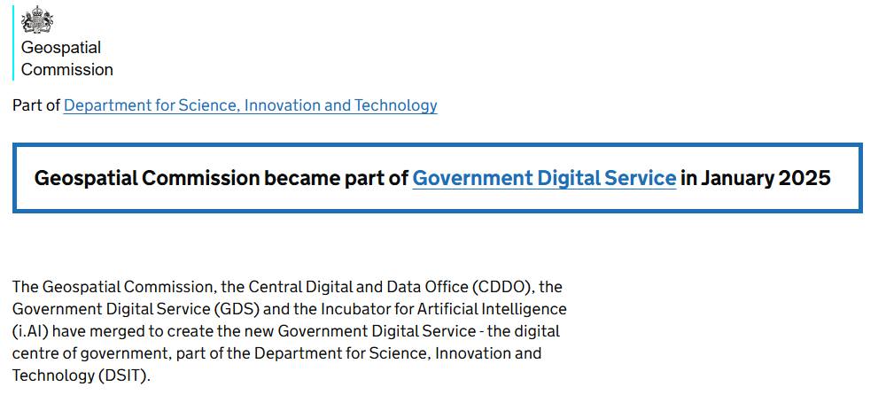 1. 영국 공간정보위원회(Geospatial Commission)는 2025년 1월부터 과학기술혁신부 산하 정부디지털서비스 소속으로 변경. 이에 따라 과학기술혁신부가 영국 지리원(Ordnance Survey) 지분 100% 보유. 공간정보를 디지털 자산의 일환으로 간주.