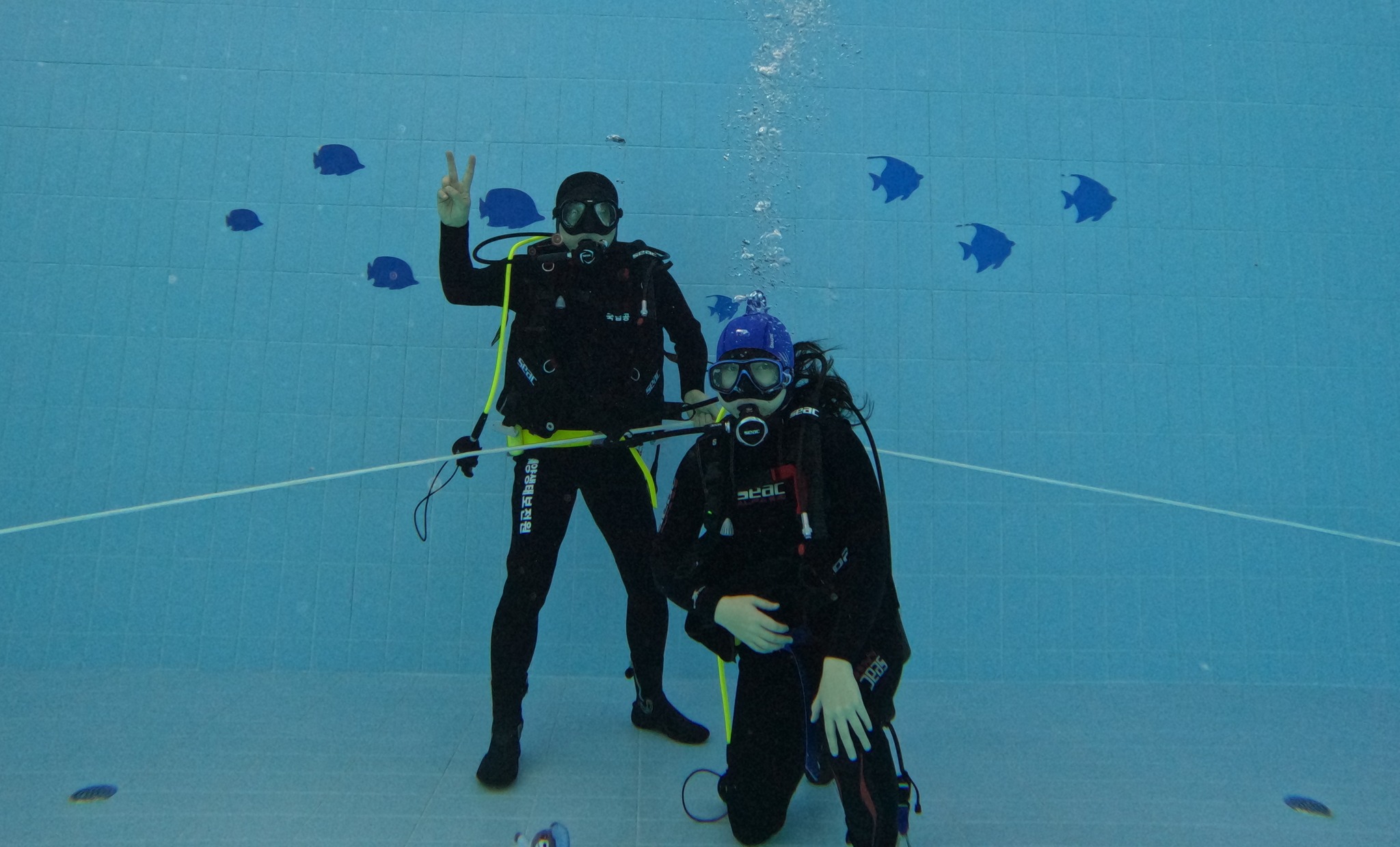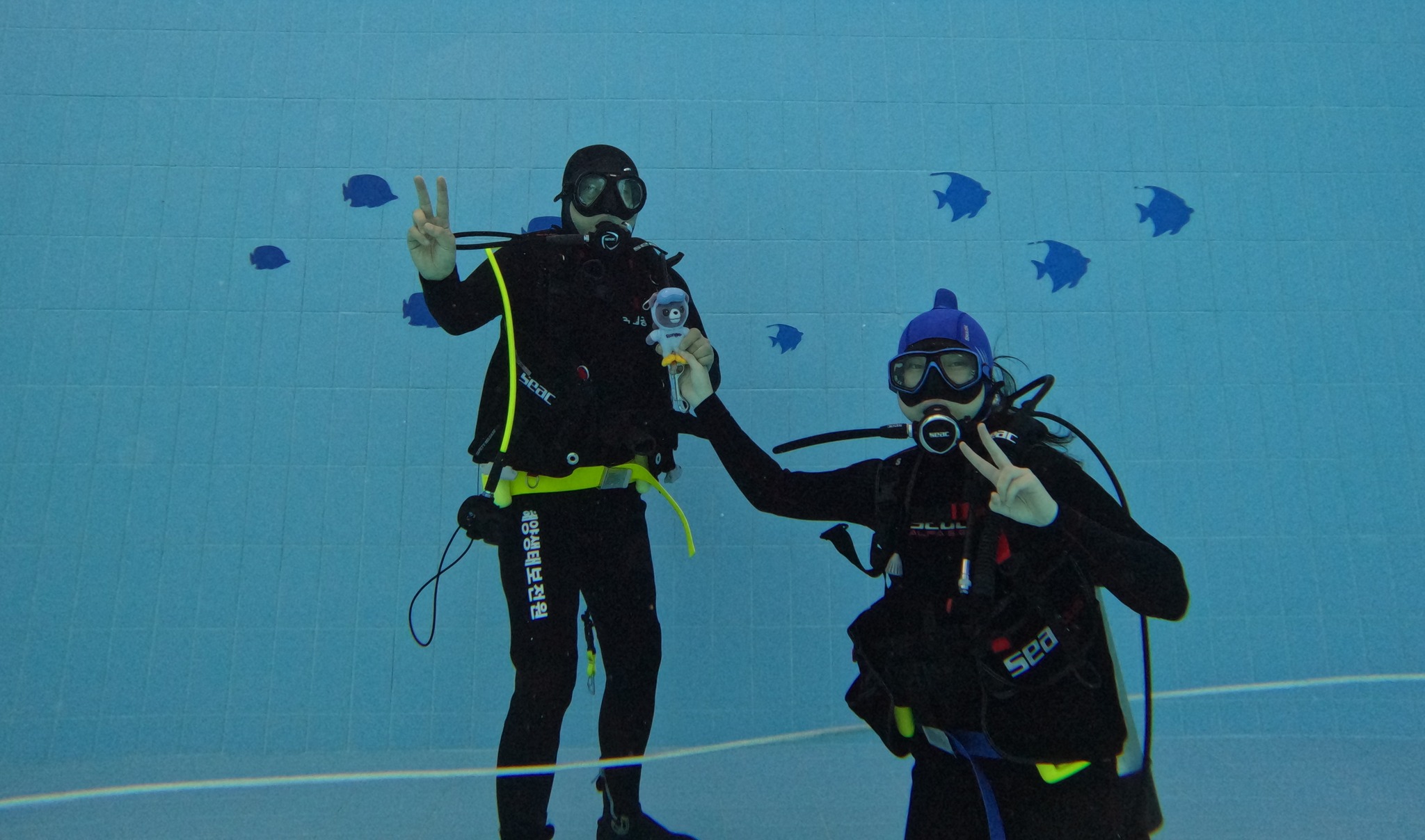 애와 함께 스킨 스쿠버 실습. 지상 교육 받고 살금살금 수조 밑으로 내려가는데 처음에는 귀가 너무 아픔. 배운대로 코 막고 불어도 계속 귀가 아파서 나는 나이 들어 어렵나 생각하며 느릿느릿 내려감. 근데, 막상 수심 5m 바닥에 도착하니 귀가 안 아파서 애랑 물 속에서 열라 재밌게 놈. 물 밖에서 물어보니 애도 귀가 많이 아팠는데 막상 내려가고 나니 괜찮아졌다고. 귀가 적응하는데 시간이 필요한 모양. 그랑 블루 가즈아~~