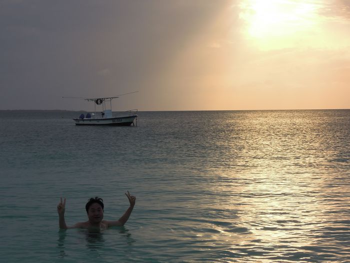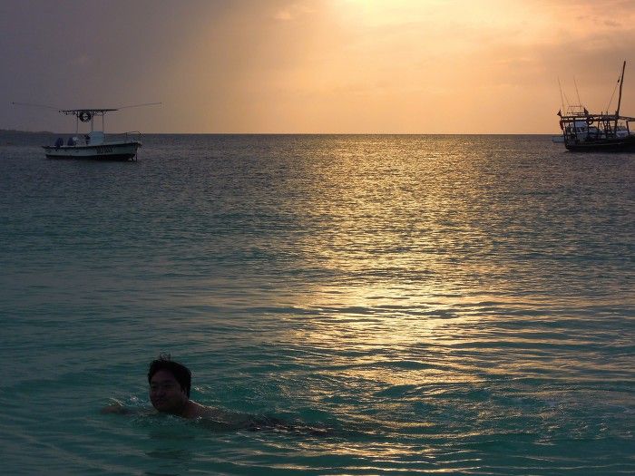 우리는 석양을 즐기려 눙위 해변의 서쪽 편으로 갔는데 여기서는 그때 찍은 사진을 몇 장 공유해 본다. 이곳 해변의 모래는 분말처럼 곱고 바닷빛은 에메랄드 빛을 뿜어낸다. 물은 마치 호수나 내해의 물처럼 잔잔하고 해변가 수심이 깊지 않아 수영하기에 더없이 좋다. 도착해 바로 바다로 뛰어들어 한 30분 가량을 정신 없이 수영하며 이 아름다운 바다를 즐겼다. 이 해변이 세계 10대 해변 중 하나라고 하는데 믿을 만한 정보인지는 잘 모르겠다. 다만, 끝없이 이어진 아름다움 해변과 에메랄드 빛 바닷물이 어울어져 천국 같은 풍경을 자아낸다.