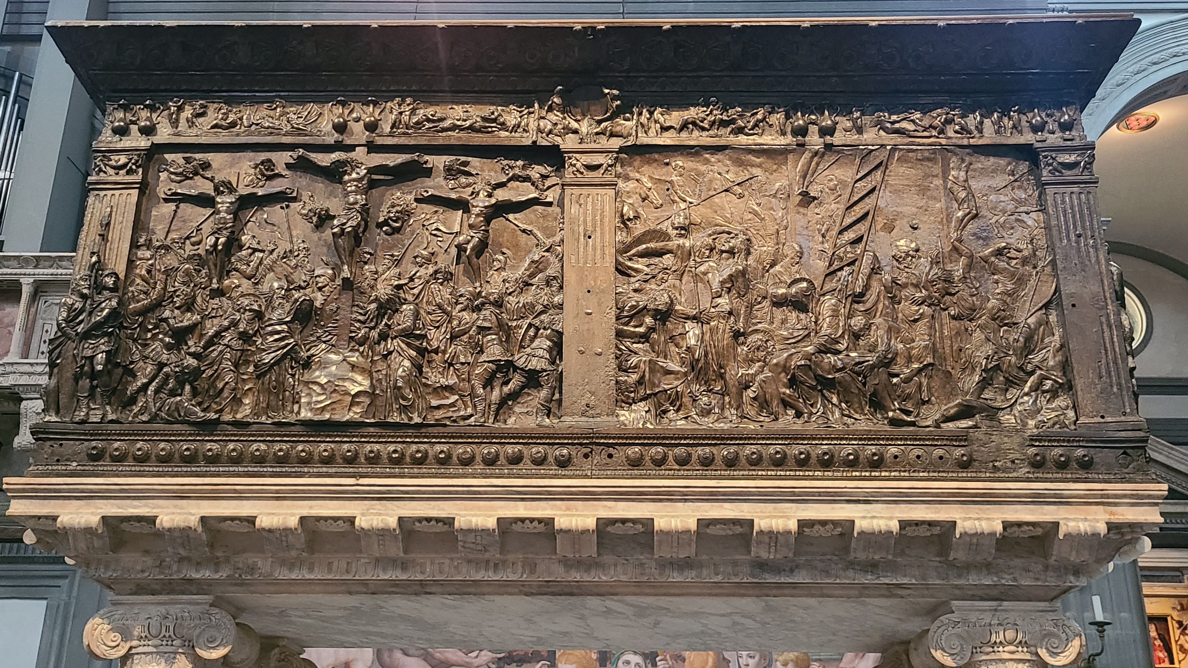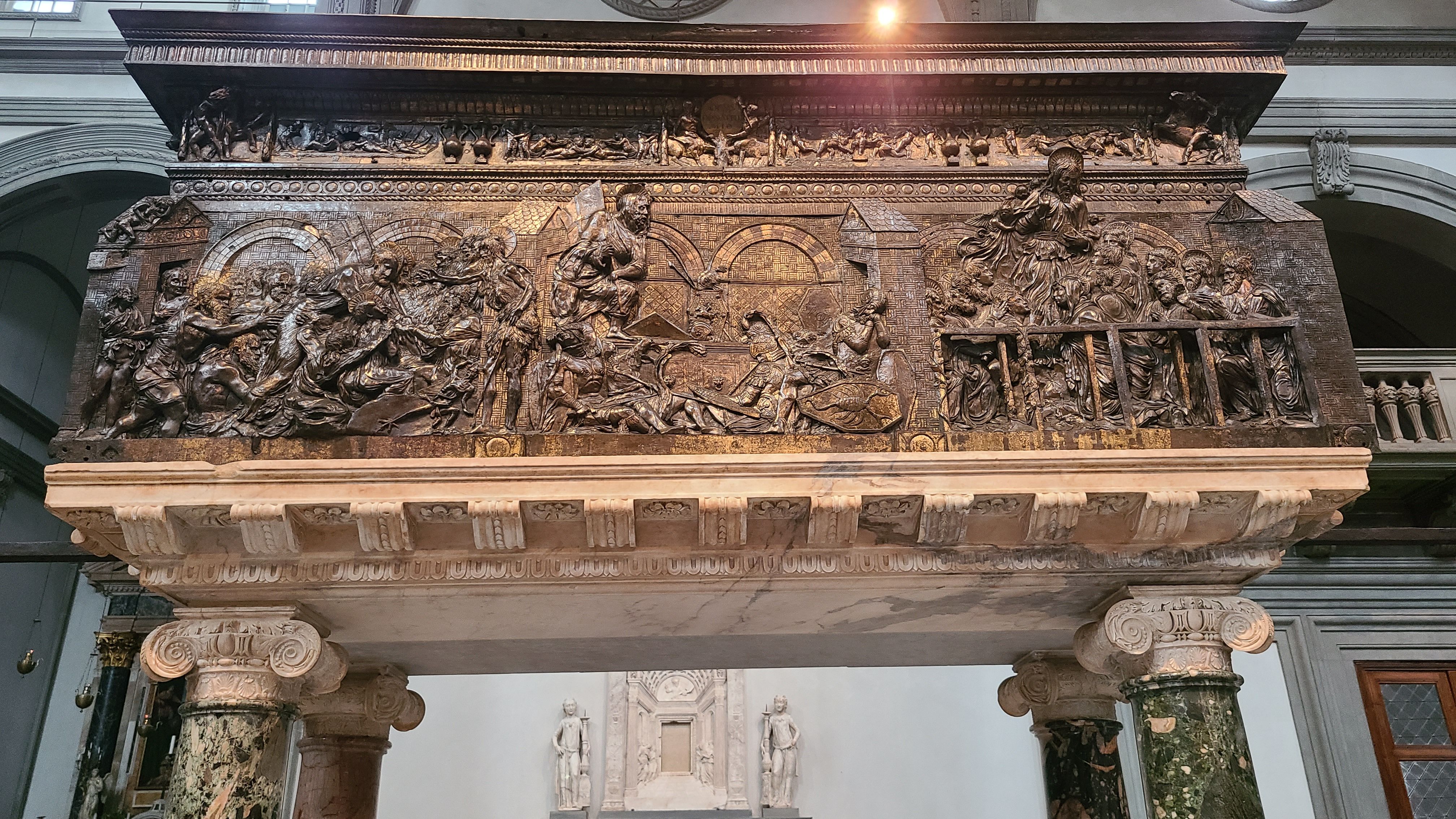 여기서는 피렌체 메디치 가문의 본당으로 유명한 산 로렌초 성당의 몇몇 사진을 공유한다. 성당은 규모에 비해 인간적이며 온화한 느낌을 줬다. 르네상스 영향 때문이 아닌가 싶었다. 비슷한 규모의 옛 고딕성당이 높은 천장과 과도한 장식, 스테인드 글라스 등을 통해 신과 천상계의 권위와 신비로움을 표현하려 했던 것과는 차이가 있었다. 다만, 여기도 성당인지라 성서의 여러 이야기가 다양한 방식으로 변주되어 표현되고 있기는 했다. 예수의 탄생과 죽음과 관련한 그림이나 장식이 주로 많은 점이 흥미로웠다.