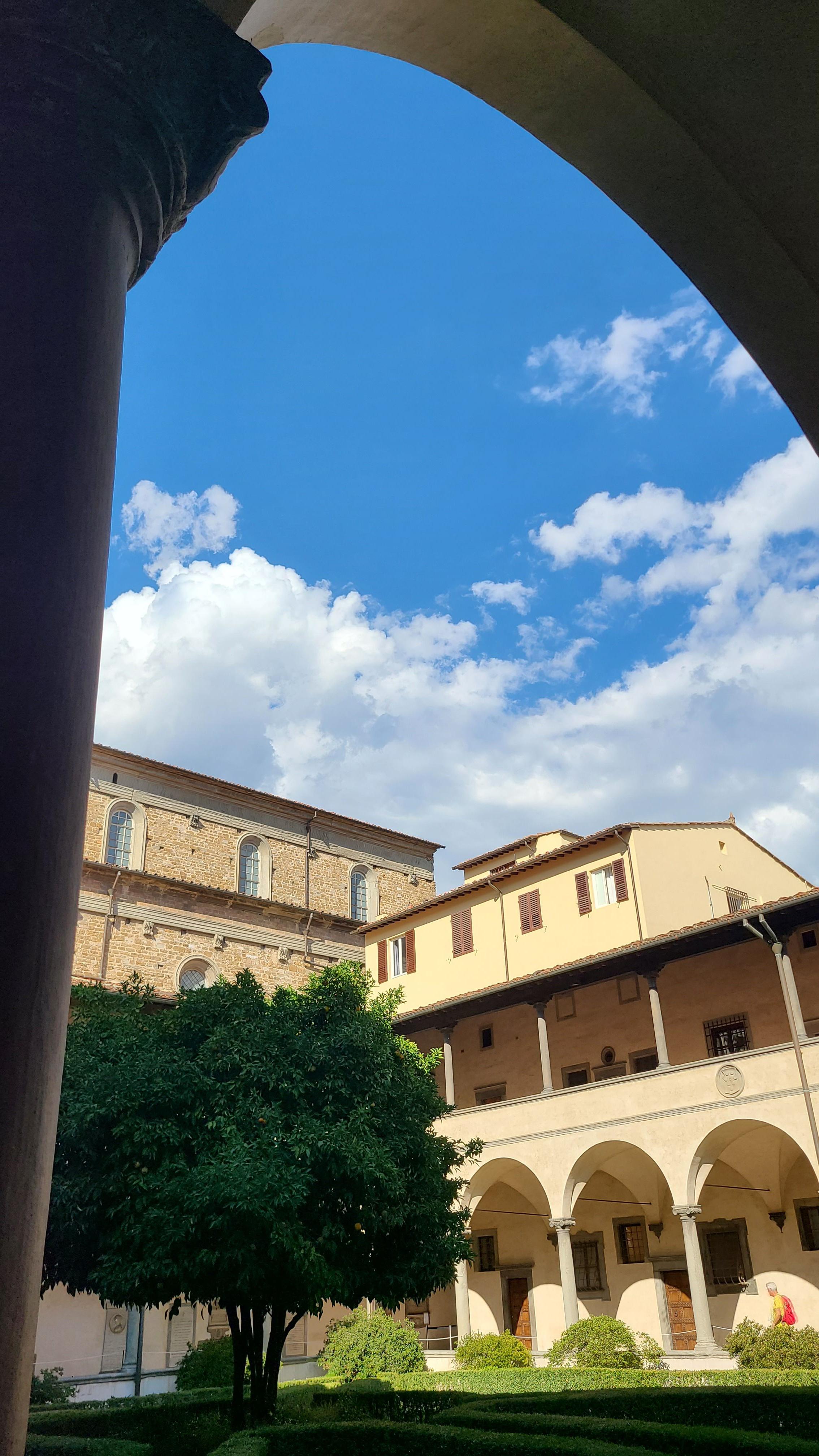 산 로렌초 성당의 중정이다. 멀리 지오토탑이 보인다. 파란 하늘과 종탑과 정원이 어우러져 한폭의 그림 같은 풍경을 만들어 낸다.