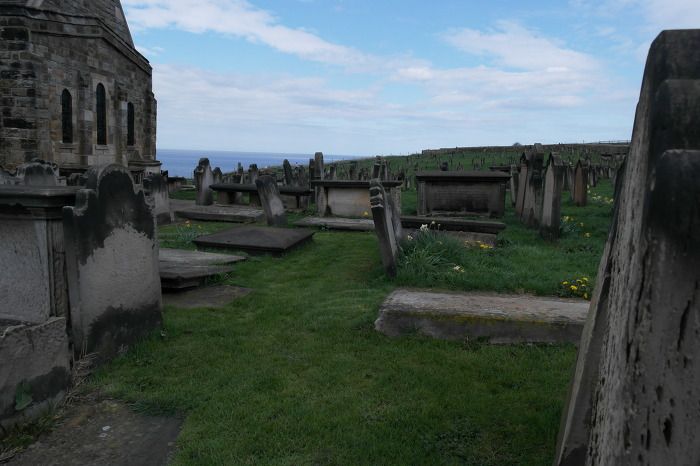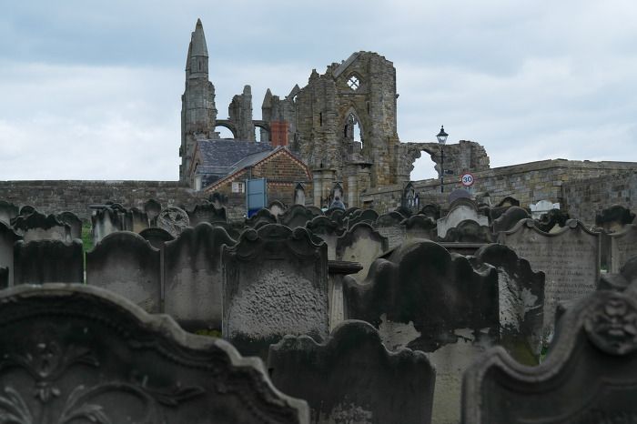 세인트 메리 교회에서 바라 본 윗비 사원의 모습. 이렇게 묘비도 많고 무너진 폐허가 바로 앞에 있으니 뱀파이어 전설이 나오지 않았을까 싶기도 하다.