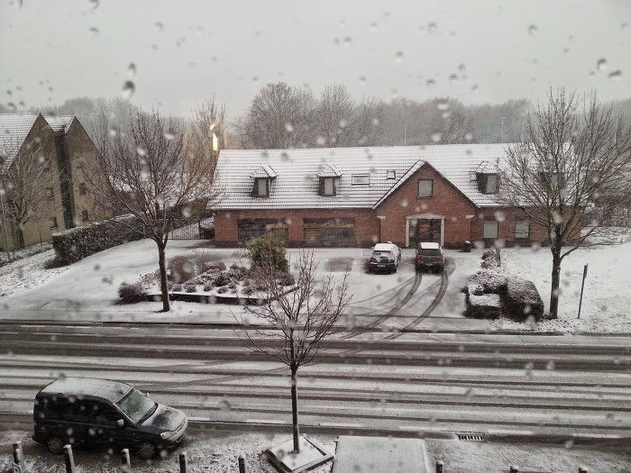 아이가 너무 춥다고 해서 결국 늦은 점심을 먹고 호텔로 일찍 돌아왔다. 그런데, 브뤼헤를 떠나자마자 진눈개비가 함박눈으로 변해 쏟아져 내리는 것이 아닌가? 호텔 돌아왔을 때는 이 정도로 눈이 쌓였다. 실제 이날 오랜만에 벨기에에 눈이 많이 왔다고. 벨기에 뉴스 첫 소식도 이날 눈소식이었다. 조금만 늦게 출발했어도 우려스러운 상황에 처할 수도 있었겠다 싶었다.