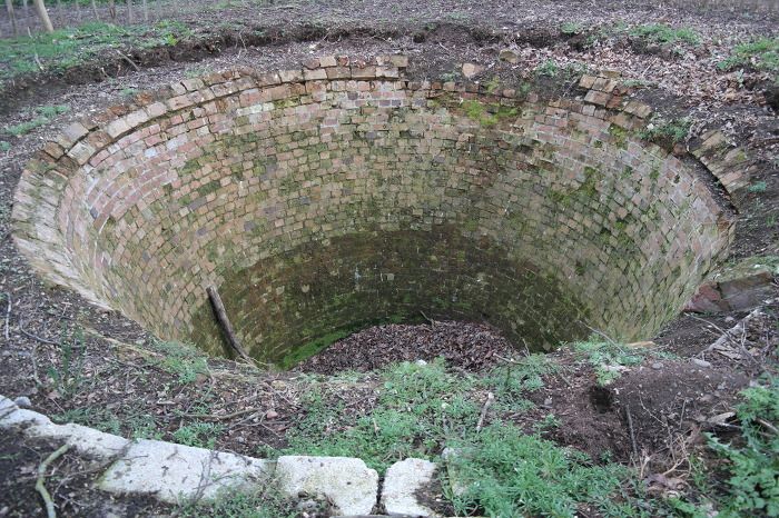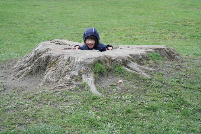하우스 입구 잘린 나무 중간이 텅 비어 있다.