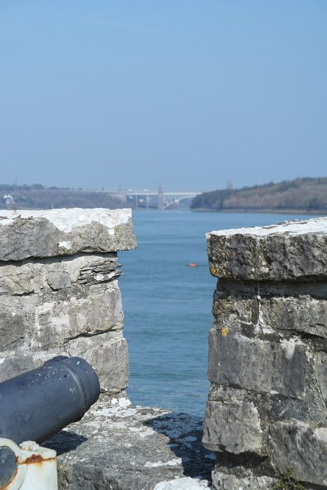 하우스에서 보이는 메나이 해협(Menai Strait)과 브리타니아 대교(Britannia Bridge).