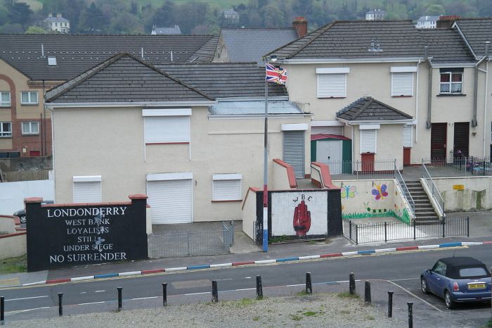 1998년 평화 협정 이후 겉으로는 많이 평온해졌지만 아직 데리 곳곳은 이렇게 긴장이 남아 있다. 특히, 데리 서안(West Bank)는 아일랜드 국경과 바로 접해 있는 곳으로 아일랜드 민족주의 성향이 강한 곳이다. 이곳을 아일랜드에 떼 주는 게 맞다는 이야기가 영국 정치인의 입에서 나왔을 정도. 하지만, 이곳에도 영국 통합주의자가 살고 있고 자신들이 이곳에 거주하고 있음을 이렇게 시위하고 있다. 굴복이란 없다는 선언과 함께.